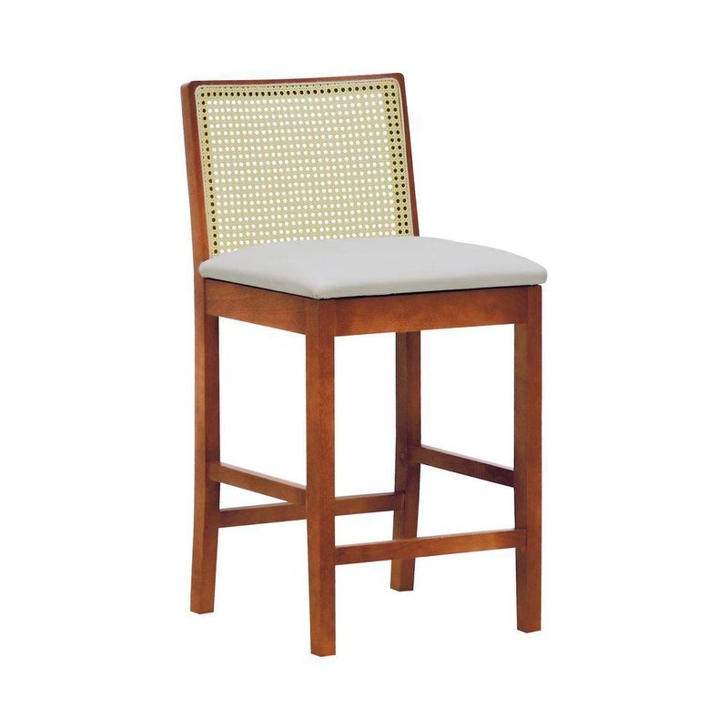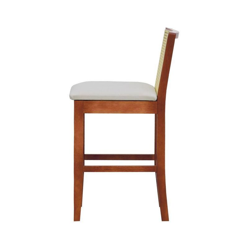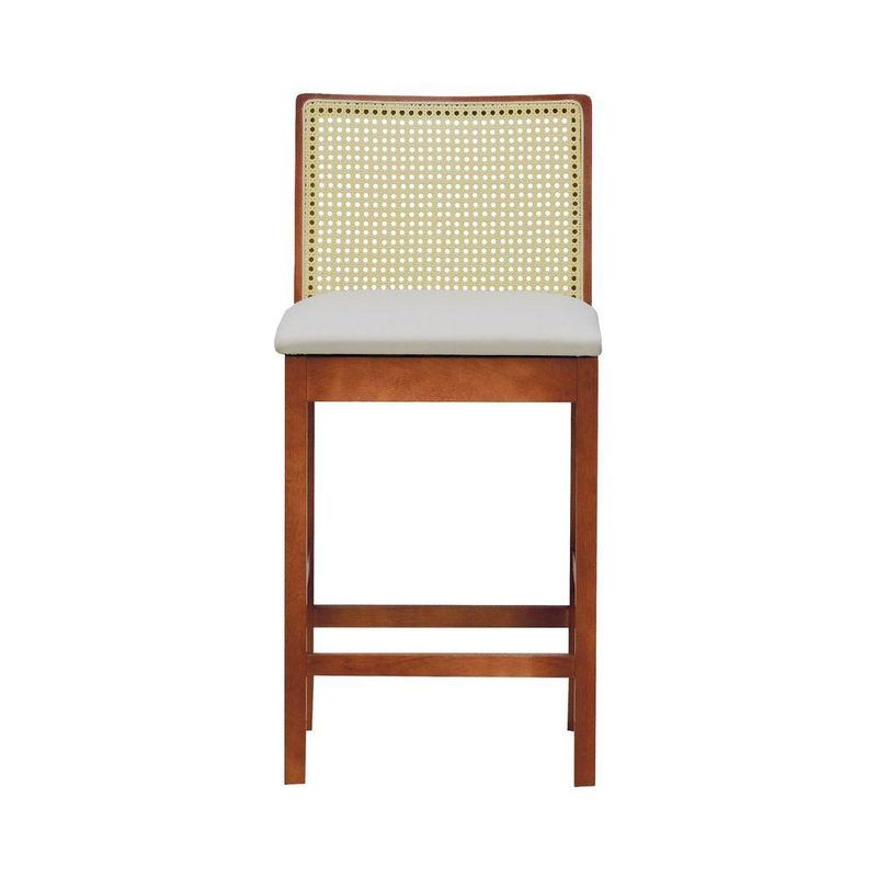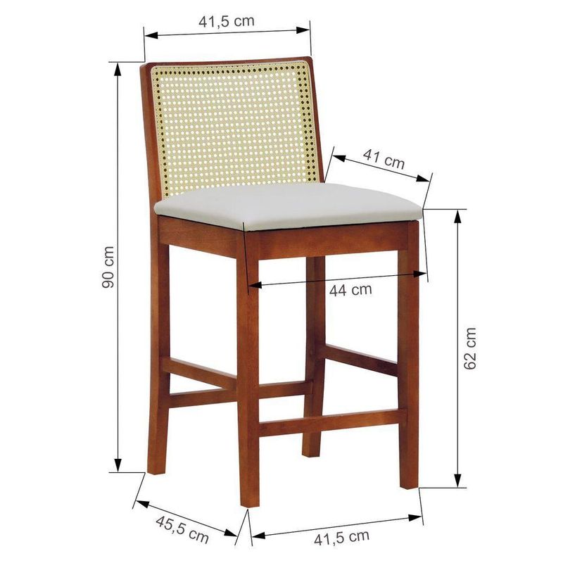 Banqueta Média Pérola Madeira Maciça Com Telinha C/ 62cm Altura - Amêndoa Corano Bege
