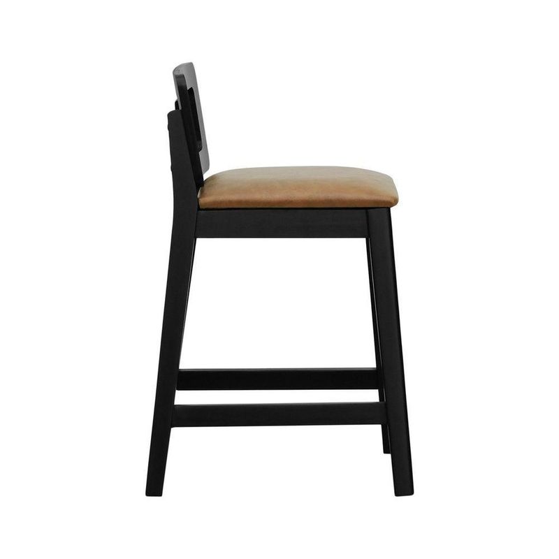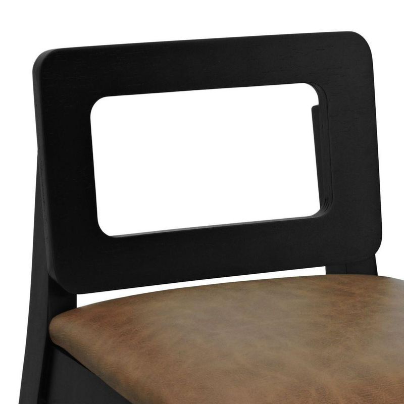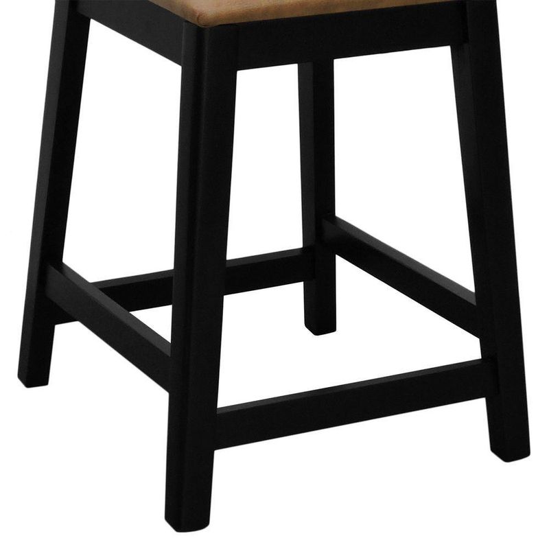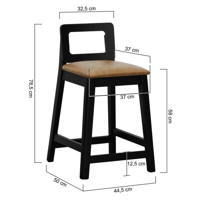 Banqueta Média River Madeira Maciça - Preto Assento Estofado Corano Marrom Mescla