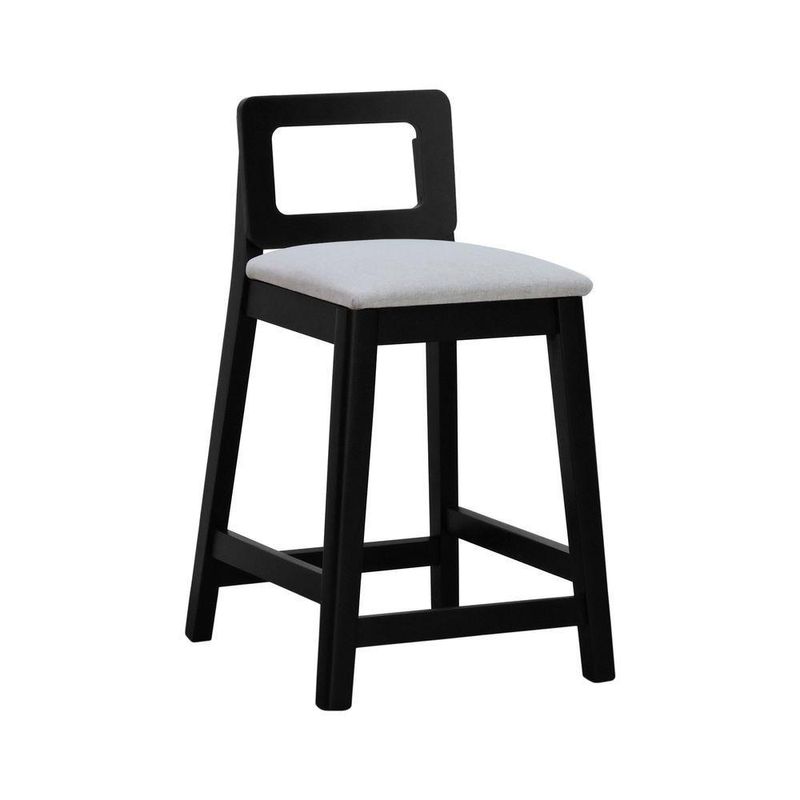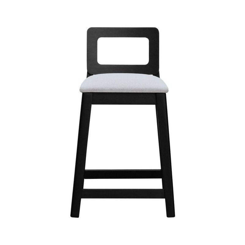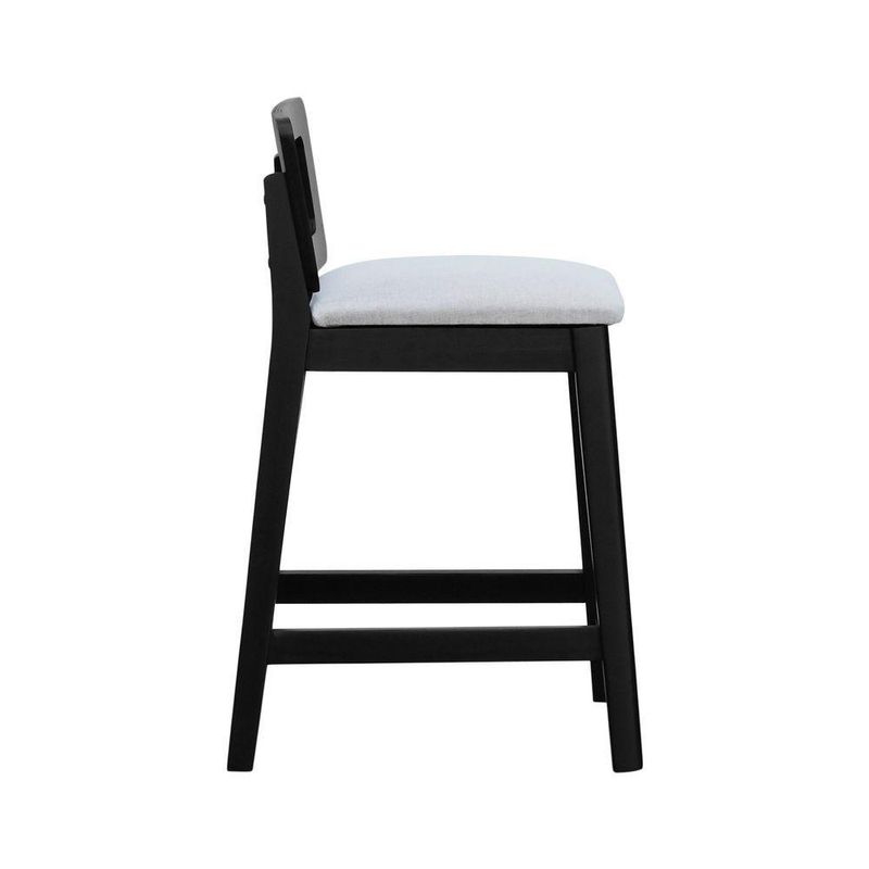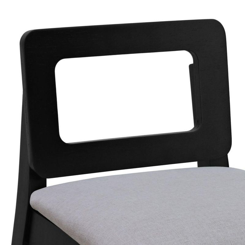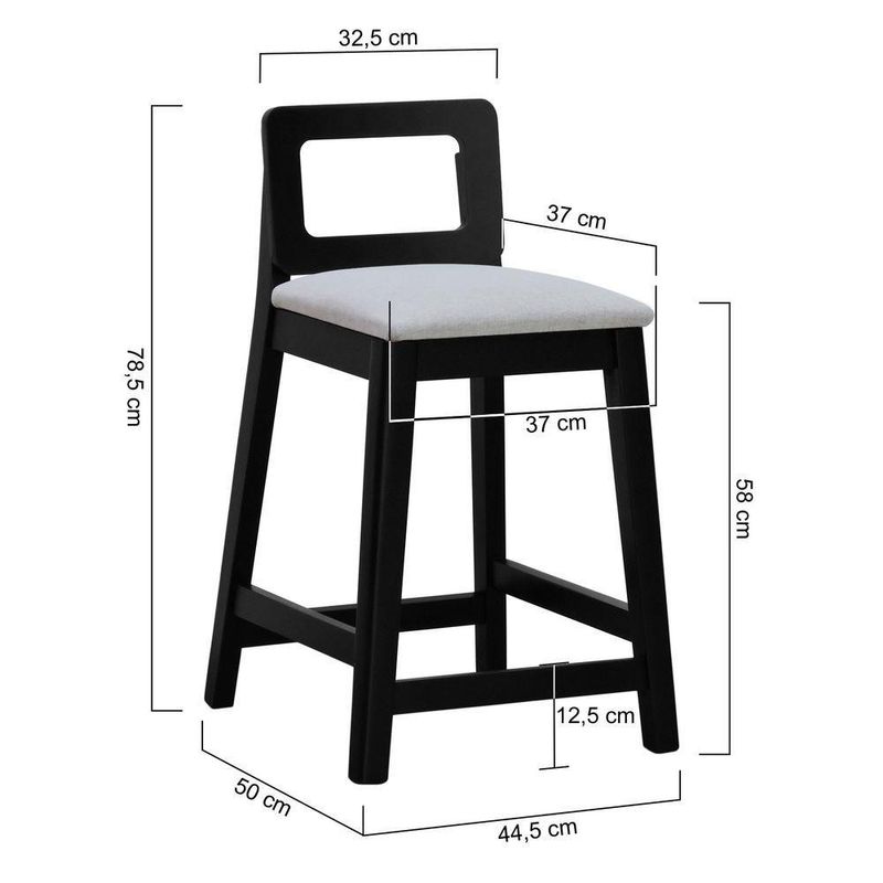 Banqueta Média River Madeira Maciça - Preto Assento Estofado Linho Bege Mescla Impermeável