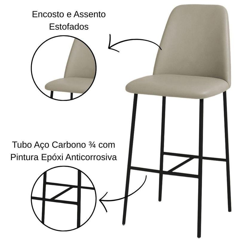 Banqueta Turquia Couro Areia Em Metal Preto