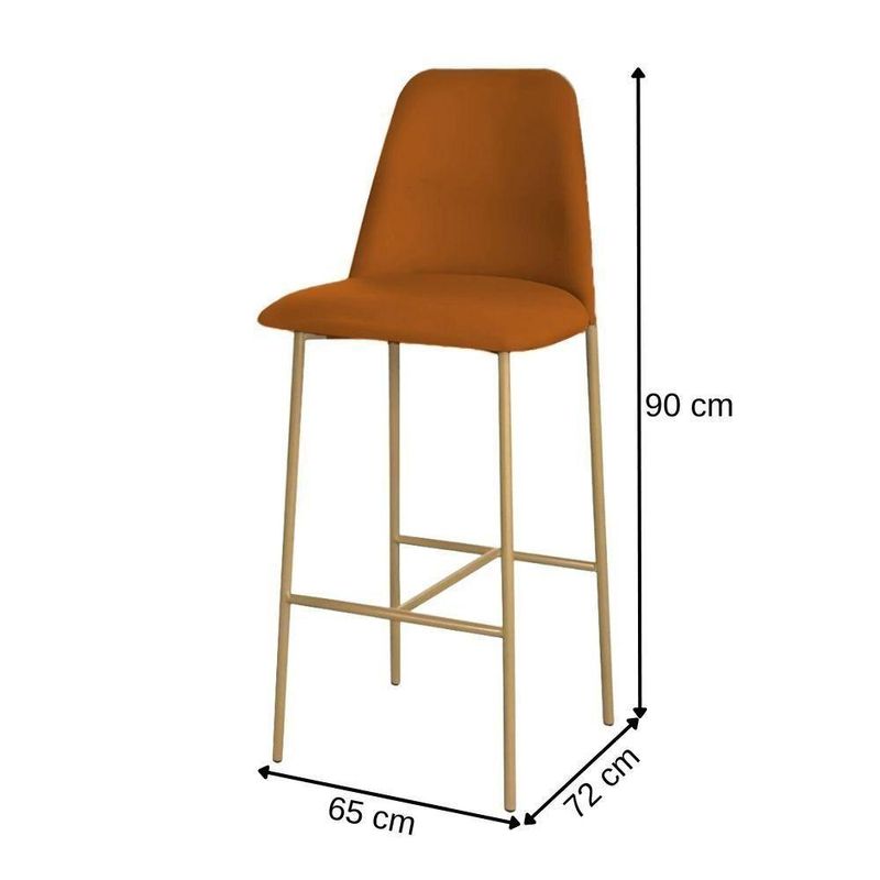 Banqueta Turquia Veludo Terracota em Metal Dourado A Banqueta Turquia é a escolha perfeita para quem busca elegância, conforto e resistência em um só produto. Com design sofisticado e acabamento de alta qualidade, ela se adapta facilmente a ambientes como cozinhas, áreas gourmet, restaurantes e bares. Especificações - Medida do produto: 90 (A) x 65 (L) x 72 (P) cm; - Estrutura do Encosto e Assento: Madeira Maciça Reflorestada; Estofado; - Tecido: Veludo Terracota; - Cor da Base: Dourado Fosco; - Estrutura da Base: Tubo em Aço; - Revestimento: Pintura Epóxi Anticorrosiva; - Peso suportado: 120 kg; - Necessita de montagem: Não; - Peso do Produto: 10 kg; Informações Importantes - A disponibilidade se refere ao prazo para o do produto encomendado. - A cor do produto pode variar em relação à foto devido a fatores como tratamento de imagem e calibração do monitor. - Detalhes e acabamentos podem não ser evidentes nas imagens, que são meramente ilustrativas. - Objetos que aparecem nas fotos não acompanham o produto. - A instalação deve ser realizada por um técnico de confiança do cliente, pois não nos responsabilizamos por montagens. - A transportadora não realiza com subida de escada ou içamento de produtos; despesas desse tipo são de responsabilidade do cliente. - Limpeza e cuidados: pode ser aspirador de pó, escova com cerdas macias ou limpeza a seco. Não utilizar produtos químicos, abrasivos ou limpeza a vapor. Evitar exposição prolongada ao sol. Cor: Terracota | Tonalidade: Terracota | Produto: Banqueta | Cômodo Indicado: Multiuso | Material da Estrutura: Madeira | Altura da Banqueta: Média: de 45 a 75 cm | Coleção Jardim: Não