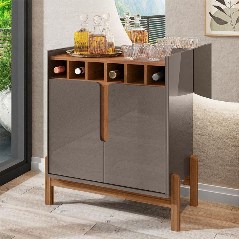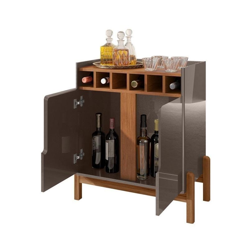 O Aparador Bar irá agregar muito mais charme.Elaborado em MDF/MDP. Laterais e portas em MDF 15mm, Tampo em MDP 15mm.Pés em madeira maciça,Possui 2 portas e Adega para 6 garrafas,Acabamento Semi-BrilhoSuporta até 32,2Dimensões do Produto:Altura: 79 cmLargura: 75 cmProfundidade: 38,5 cmInformações Adicionais:Material: MDP/MDF