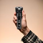 Já o display digital moderno exibe ícones que indicam o nível de carregamento e da bateria, oferecendo controle total sobre o uso do barbeador.