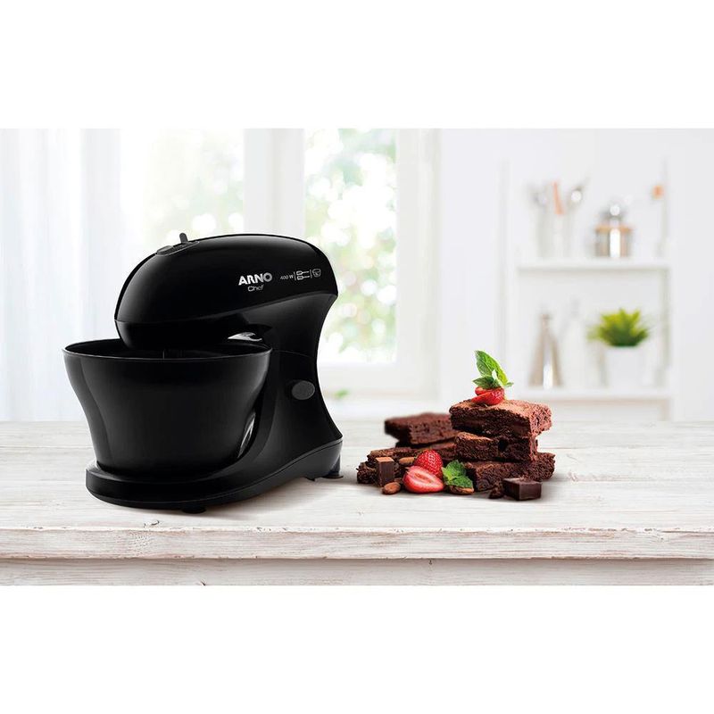Batedeira Arno Chef 400W 2 Batedores Multifuncionais 5L Preta SM01