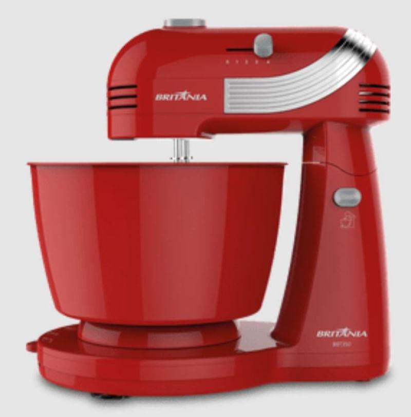 A Batedeira Britânia BBT350 possui 350W de potência, além de contar com 4 velocidades e função pulsar, assim você consegue várias regulagens que melhor se adequam aos mais variados tipos de receitas!Tem batedores em aço inox, ideal para massas leves, com ela cozinhar fica prático e saboroso.Se durante o preparo das suas receitas você se esquecer de algum ingrediente, não tem problema, pois sua plataforma é basculante, facilitando o acréscimo de ingredientes e a movimentação da tigela. Por falar em tigela, tem capacidade para 4,3 litros, perfeita para que você ir muito além. Ainda dispõe do botão ejetor de batedores, benefício que garante maior praticidade e comodidade!