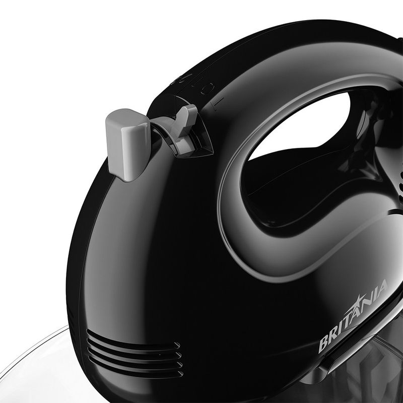 A Batedeira Britânia Pérola 550 acompanha ainda 1 par de batedores para massas leves e botão ejetor dos batedores para retirá-los sem sujar as mãos. Seu corpo é removível e você pode usá-la como portátil.