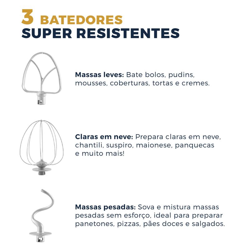 Inovar nas receitas fica muito mais fácil e rápido com a Batedeira Planetária Britânia BBPE01 12 Velocidades 4L 500W. Com 500W de potência, ela é ideal para preparar receitas das mais simples às mais elaboradas. Escolha entre as 12 velocidades disponíveis e prepare suas delícias culinárias com a delicadeza que elas merecem, garantindo texturas impecáveis em cada prato. E para receitas em maior quantidade, não se preocupe, pois a Batedeira Planetária BBPE01 conta com tigela plástica com capacidade para 4 litros, leve, de fácil limpeza e que pode ser levada ao freezer. Já os 3 batedores super resistentes para massas leves, massas pesadas e claras em neve, deixam tudo ainda mais prático. A Batedeira Planetária da Britânia também possui tampa antirrespingos que auxilia na hora de adicionar ingredientes sem interromper o funcionamento, impedindo respingos e sujeiras; botão de abertura automática que facilita na hora de usar, limpar e retirar os batedores; e Movimento Planetário para misturas mais homogêneas com uma maior rapidez. Conte com a Batedeira Planetária Britânia BBPE01 12 Velocidades 4L 500W e deixe sua cozinha mais completa!