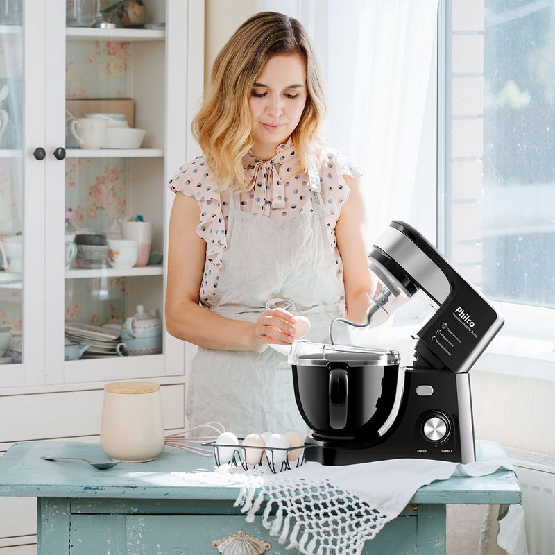 Claras em neve, chantili, maionese, bolos, pudins, pizzas, pães, você decide o que fazer e a Batedeira Planetária Philco PHP500P Turbo 700W prepara!