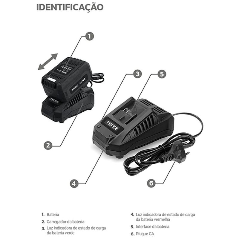 Características: Marca: Torkz Modelo: TRB0008 Referência: 7898603823149 Aplicação: Toda linha 20V da marca Torkz Cor: Preto