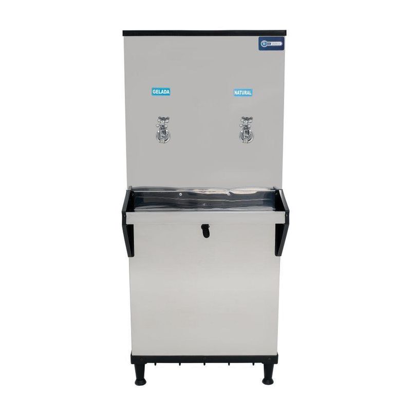 O Bebedouro Industrial Coluna Knox 50L 1 Torneira Gelada 1 Torneira Natural Inox oferece alta capacidade e resistência para atender grandes fluxos de pessoas com praticidade e segurança. Com estrutura e revestimento em aço inox 430, o equipamento garante durabilidade e fácil higienização, enquanto o reservatório interno em polipropileno atóxico mantém a qualidade da água.Seu sistema de refrigeração com serpentina em aço inox 304 e gás ecológico R134a proporciona eficiência no resfriamento, aliado ao termostato com 7 níveis de ajuste de temperatura, permitindo controlar a água conforme a necessidade.O modelo possui duas torneiras, sendo uma para água gelada e uma para natural, além de filtro POU 5 classe C, que reduz impurezas e melhora o sabor da água. O aparador de água reforçado com laterais em ABS aumenta a segurança no uso e facilita a limpeza, enquanto os pés reguláveis garantem estabilidade em diferentes superfícies.Com capacidade de 50 litros e atendimento de até 150 pessoas por hora, o bebedouro Knox é ideal para ambientes corporativos, industriais e institucionais.Mais resistência, capacidade e pureza para o dia a dia de grandes espaços.Especificações Técnicas: