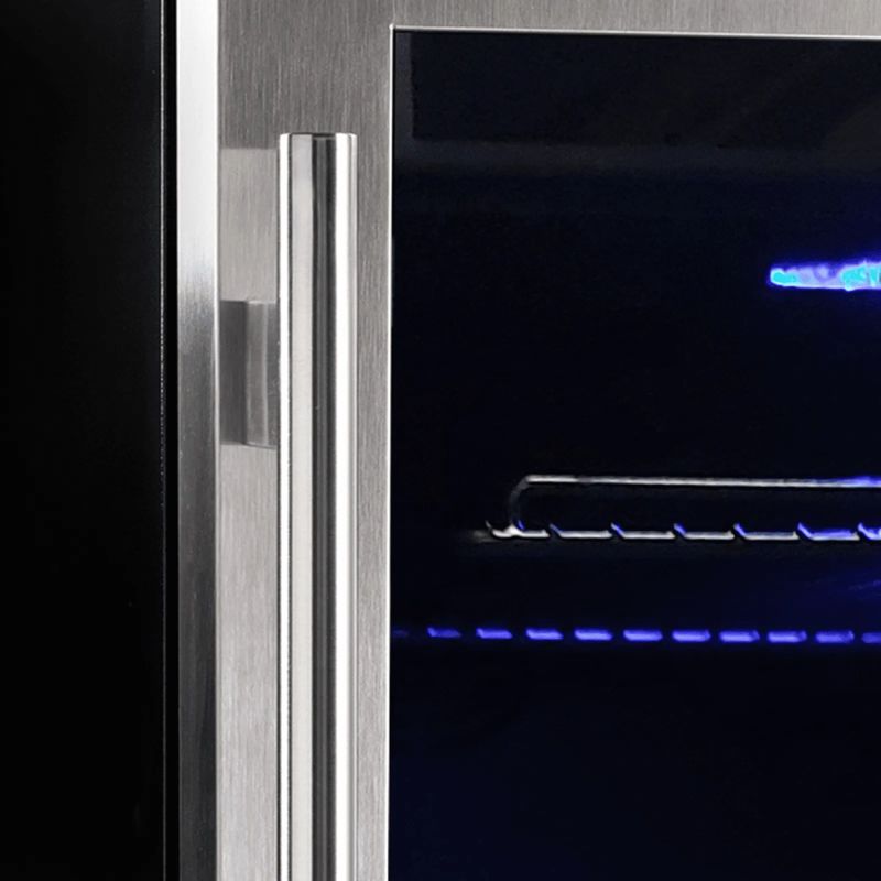 A resposta está na inovação. A BEC135 incorpora um sistema de LED azul, proporcionando não apenas visibilidade, mas também um ambiente sofisticado. As luzes realçam as prateleiras telescópicas em metal black, criando um cenário elegante para suas bebidas.