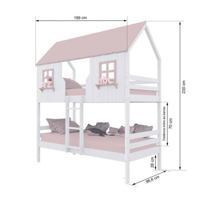 Beliche Casinha Encantada Madeira Maciça Branco/ Rosa Megamobilia