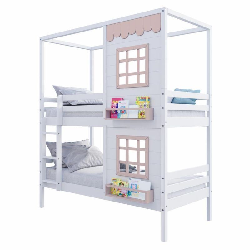 Beliche Casinha Reta Com 02 Janelas Madeira Maciça Branco/ Rosa Housin