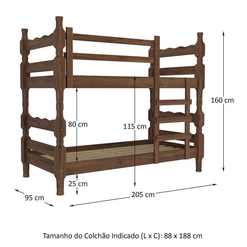Beliche Madeira Maciça - Vira 2 Camas - Com Colchões Inclusos Porto Multimóveis Cr4159 Imbuia