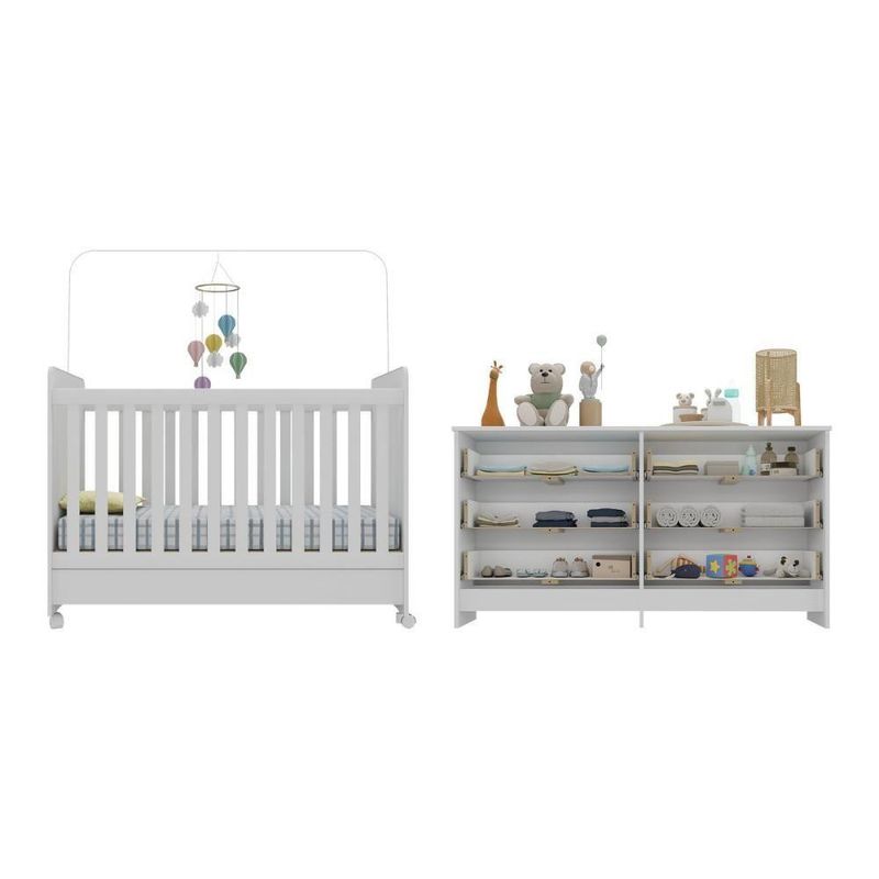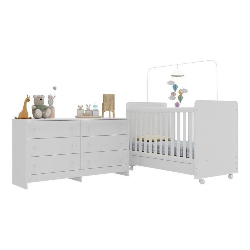 Berço 3 Em 1 Para Colchão 130x70cm Com Rodízios E Cômoda Chantilly Multimóveis Mp4290 Branco Branco