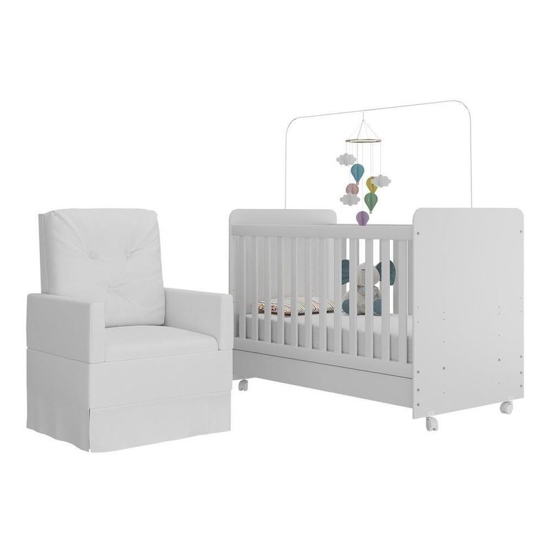 O Berço Americano 3x1 com Poltrona de Amamentação Pimpolho Multimóveis MP4071 foi criado para complementar o quartinho, facilitando a vida da mamãe nos preparativos para a chegada do bebê. O berço é padrão americano (tamanho do colchão 130cm x 70cm) e se transforma em sofá e minicama, o que possibilita ser utilizado por mais tempo. Produzido em MDP com acabamento em pintura UV e Laca PU, que garante maior durabilidade e resistência, o lastro possui 3 regulagens de altura para o colchão e acompanha suporte para mosquiteiro, que garante noites mais tranquilas de sono. A grade Soft (PVC) é produzida de maneira ecologicamente correta, com matéria-prima livre de metais pesados, atóxica e com proteção antiamarelamento. Berço certificado pelo INMETRO sob o Selo n° 005770/2018. NÃO ACOMPANHA COLCHÃO. A poltrona de amamentação é produzida em madeira de eucalipto, com revestimento em material sintético, molas reforçadas e mecanismo de balanço, proporcionando muito aconchego. Capaz de suportar 110kg, o assento possui densidade D23, que garante maior conforto e durabilidade.