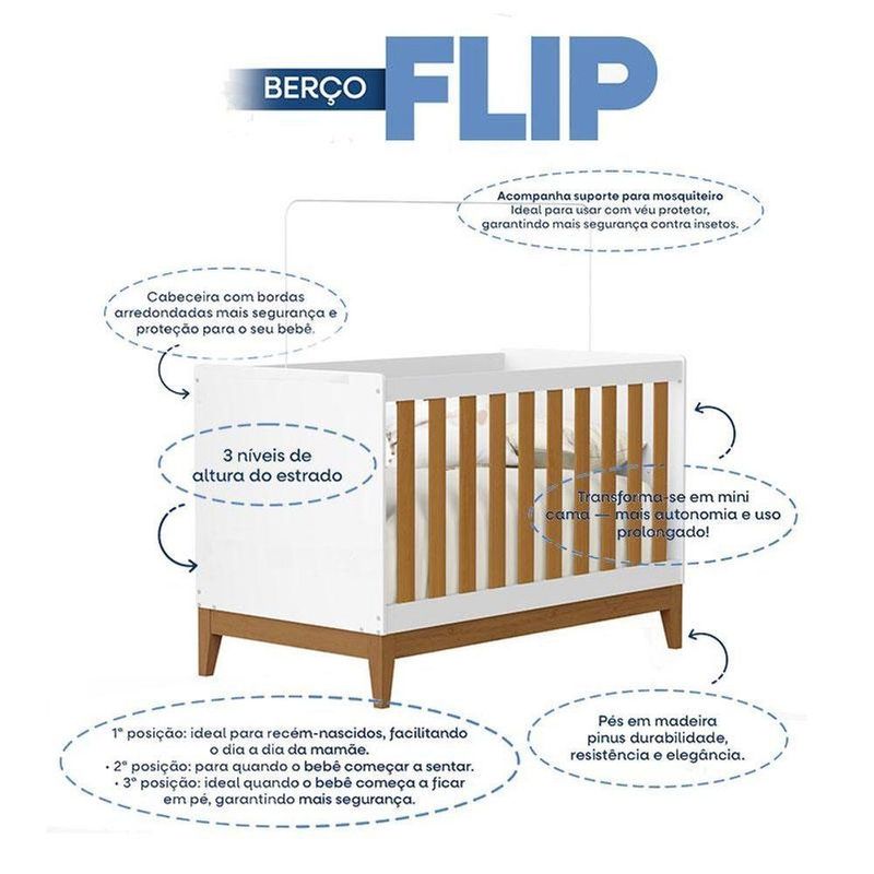 Berço Americano Flip Branco Acetinado Savana Reller E Guarda Roupa Casal Americano 6 Portas Branco Hp - Henn