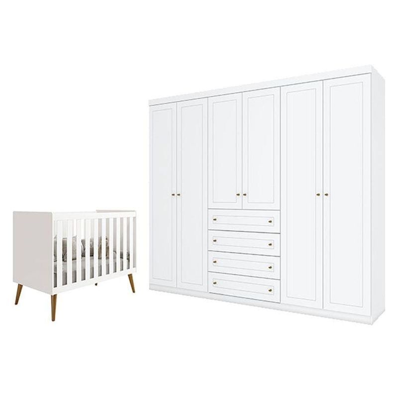 Berço Americano Isis Branco Acetinado Savana - Reller E Guarda Roupa Casal Americano 6 Portas Branco Hp - Henn