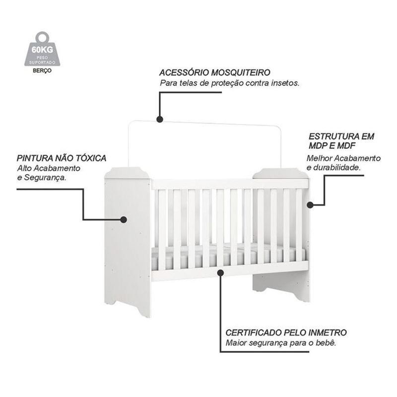 Berço Americano Mini Cama Mel com Cômoda Infantil Duda Branco Brilho – Phoenix BabyEstá montando o quartinho do seu filho? Então apresentamos para você este belo conjunto composto pela berço americano mini cama da linha Mel desenvolvido pela Carolina e a cômoda infantil da linha Duda desenvolvido pela Phoenix Baby. Possuindo ótimo conforto para seu bebê tirar um soninho e um ótimo espaço interno para a mamãe acomodar as roupinhas e acessórios do seu bebê. Fabricados com materiais de qualidade em MDP/ MDF garante mãos durabilidade e resistência, além de ser projetado para acompanhar todas as fases de crescimento de seu filho. Confira as características:Características Técnicas:Berço Americano Mini Cama Mel Branco Brilho - Carolina- Desenvolvido em MDP/MDF