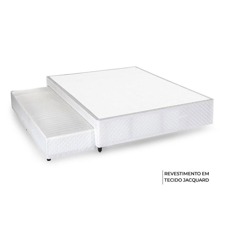 CAMA BOX COM AUXILIAR Base: madeira eucalipto e chapas multilaminadas Colchão auxiliar: molas Bonnel e espuma de média densidade Pés: Poliuretano expandido Revestimento: Tecido Jacquard