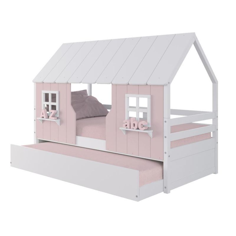 Bicama Casinha Encantada Madeira Maciça Rosa/ Branco Megamobilia