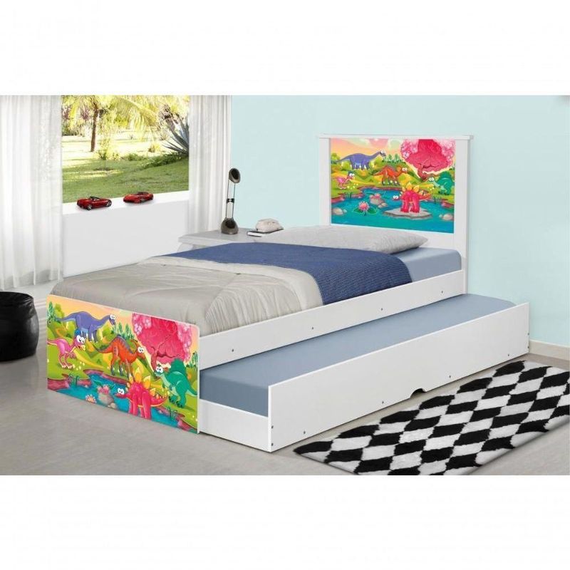 Bicama Juvenil Com Cabeceira Adesivada Dinossauros Coloridos