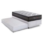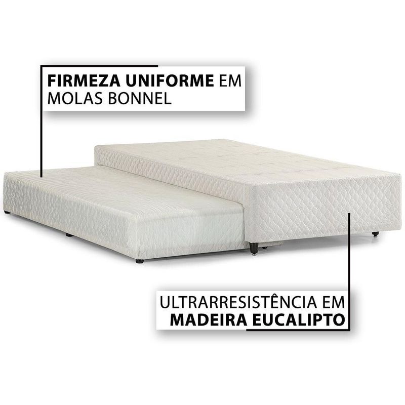 ESTRUTURA A Bicama Solteiro Herval Palermo possui molas ensacadas e EcoSpuma®, que combina com espumas de alta densidade, oferecendo suporte uniforme. O Pillow Top One Side adiciona conforto, proporcionando uma experiência de sono agradável. A Base em sua estrutura em madeira de eucalipto, que oferece resistência. O colchão auxiliar possui molas Bonnel e espuma de média densidade, proporcionando conforto. REVESTIMENTO Essa bicama entrega elegância, com revestimento em tecido Jacquard. O colchão auxiliar possui revestimento em Malha, de toque suave. A base é revestida em tecido Jacquard, de visual sofisticado.