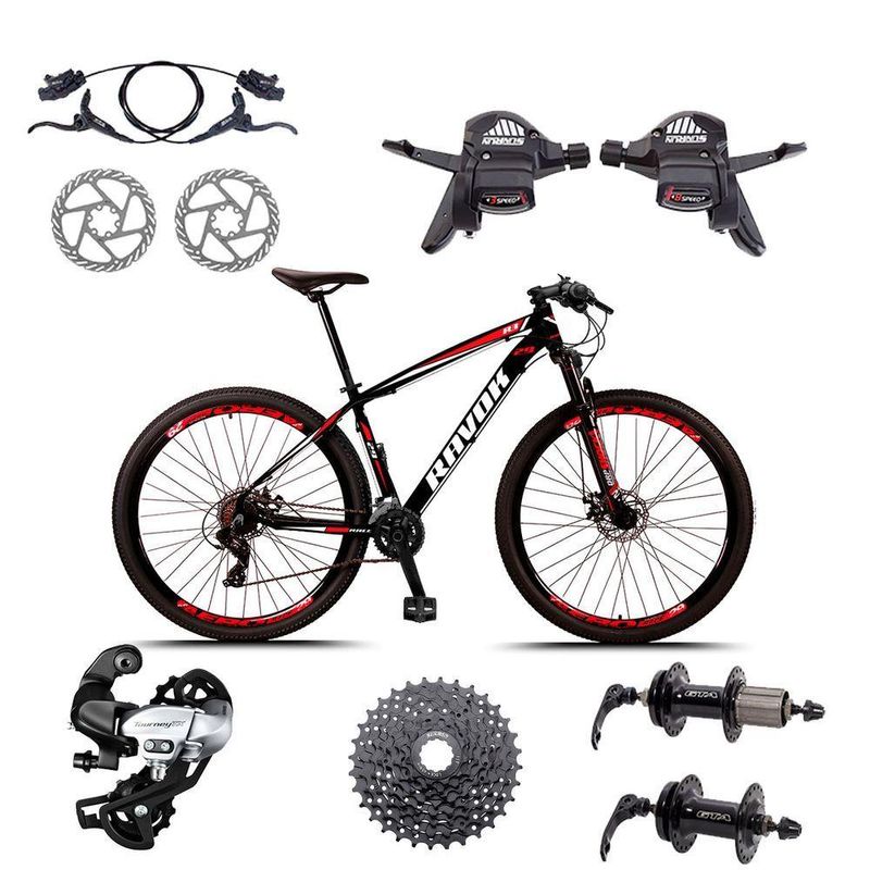 A bicicleta Ravok foi desenvolvida para quem quer realizar passeios e pegar trilhas leves. Com seu quadro em alumínio 6061, fornece segurança e leveza no seu pedal.O modelo possui 24 velocidades com câmbio Shimano Tourney TX800 que garantem trocas precisas e rápidas, freio a disco hidráulico que proporciona segurança nas frenagens e suspensão dianteira para um passeio confortável, adaptável nos diversos tipos de terreno.Disponível em diversas cores que garante um estilo próprio para você.Veja abaixo a descrição detalhada dos componentes:QUADRO: ALUMÍNIO 6061.GARFO SUSPENSÃO: Aro 29ALAVANCA/TROCADOR: rápid fire- 24vCÂMBIO TRASEIRO: Shimano Tourney Tx800CÂMBIO DIANTEIRO: Imp. 3vCASSETE: 8V indexPEDIVELA: Triplo em aço revestido 24/34/42 indexCORRENTE: index 24vFREIOS: Disco HIDRÁULICO em ALUMÍNIO – Mangueira tamanho originalCUBOS: 36 Furos CASSETE em ALUMÍNIO esferados com brocagemAROS: Aero em alumínio parede dupla 36fPNEUS: Aro 29 x 2,10 MTB cravo baixoCÂMARA DE AR: 29 x 1.95 bico grossoMOVIMENTO CENTRAL: Roller 122.5 Preto SeladoMOVIMENTO DE DIREÇÃO: Aheadset Preto semi integradoESPAÇADOR: Aheadset Em AlumínioGUIDÃO: expandido em alumínio - PretoSUPORTE DE GUIDÃO: Preto em Alumínio 31,8mmCANOTE DE SELIM: Preto em Alumínio 27,2x350mmBANCO / SELIM: Sport PU MTBABRAÇADEIRA: 31,8mm em Alumínio PretoPEDAL: Nylon plataforma pretoOBS: IMAGEM MERAMENTE ILUSTRATIVA, BIKE VAI CONFORME DESCRIÇÃORECOMENDAÇÃO DE TAMANHOSAltura do ciclista: 1,65 até 1,71m – Tamanho de quadro 15Altura do ciclista: 1,72 até 1,76m – Tamanho de quadro 17Altura do ciclista: 1,77 até 1,82m – Tamanho de quadro 19Altura do ciclista: 1,83 até 1,90m ou mais – Tamanho de quadro 21OBSERVAÇÕES IMPORTANTES:MONTAGEM- A bicicleta é montada, porém, para acomodação na embalagem e transporte, algumas peças são enviadas desmontadas.- A instalação é de responsabilidade do consumidor, orientamos que seja efetuada por mão de obra especializada.- Por motivo de transporte e manuseio, há a necessidade de efetuar uma revisão (câmbios, freios) ao receber o produto.GARANTIA - Fábrica / 3 MesesNÃO COBRE DEFEITOS POR MAU USO OU PELA MONTAGEM / REVISÃO INADEQUADA DO PRODUTO.- A garantia será validada para as bicicletas montadas e revisadas por uma oficina especializada e é referente apenas ao primeiro proprietário.- A garantia não se aplica para os itens de desgaste natural tais como: Pneu, câmaras, cabos, pastilhas de freio, centragem de aros, pintura do quadro, componentes da transmissão (corrente, engrenagens do pedivela, engrenagens do cassete ou roda livre)..OUTRAS OBSERVAÇÕES:- As fotos do anúncio são feitas com quadros do tamanho 17\'\'.- A geometria do quadro (desenho) pode mudar conforme o tamanho escolhido alterando a inclinação do tubo superior.- Pode haver alguma diferença de tonalidade entre a imagem e o produto real, por conta do tratamento de imagens e a calibração de cores da sua tela.- Dependendo o lote do produto, algumas peças podem ter cores diferentes da imagem.