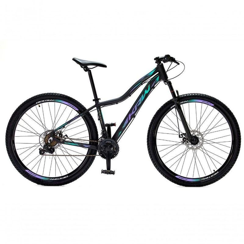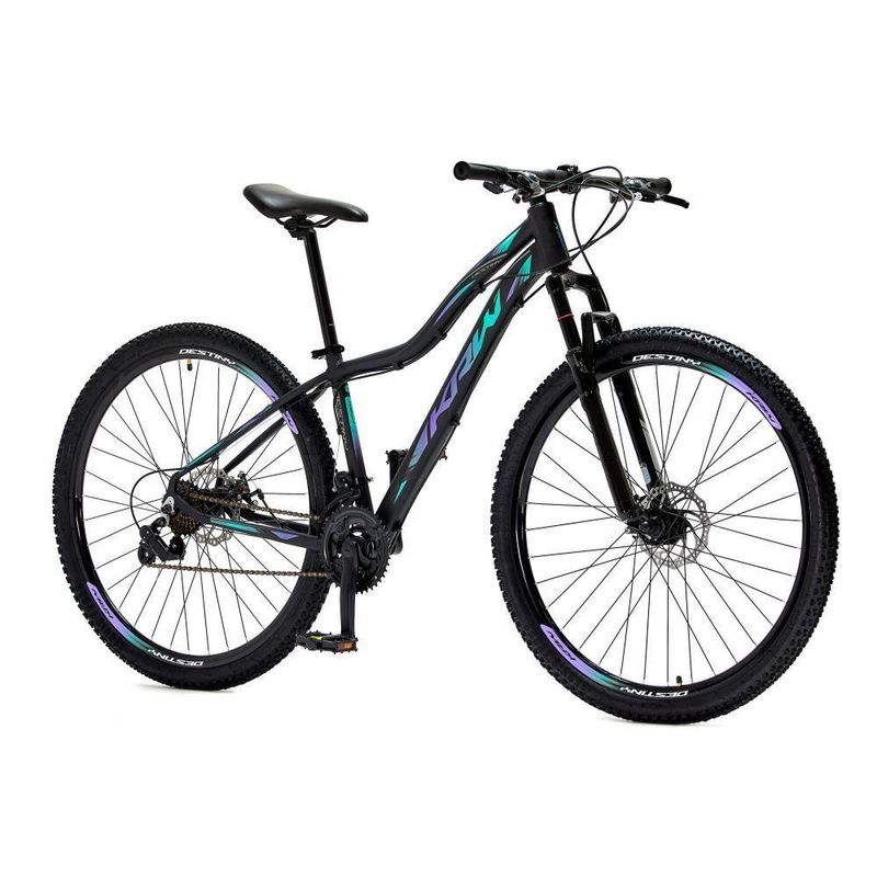 Bicicleta Aro 29 Krw Alumínio 24 Velocidades Freio A Disco Suspensão Dianteira Mountain Bike S1 - Preto/lilas E Turquesa - 15.5 Preto/lilas E Turquesa