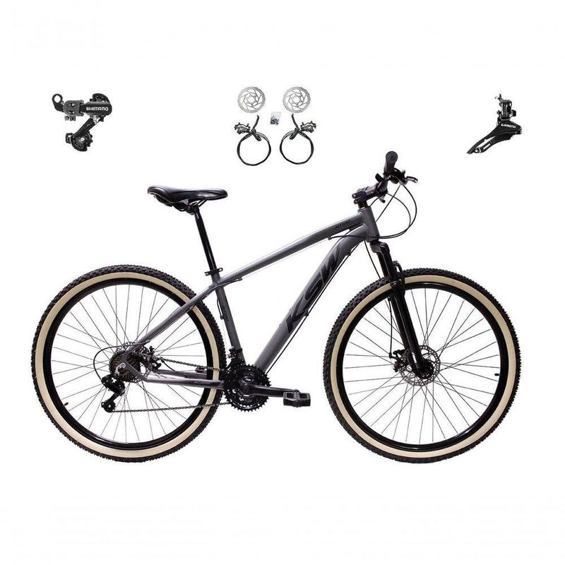 Bicicleta Aro 29 Ksw Xlt 24v K7 Câmbios Shimano Freio Hidráulico Garfo Trava Pneu Faixa - Grafite Tam.21