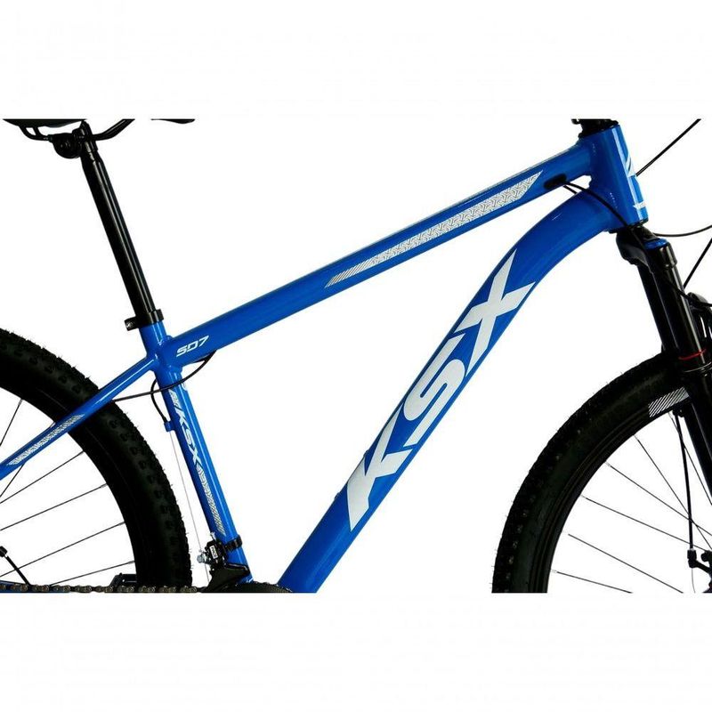 Bicicleta Aro 29 Ksx Sd7 21v Cabos Internos Alumínio Freios A Disco Garfo Suspensão Azul/branco