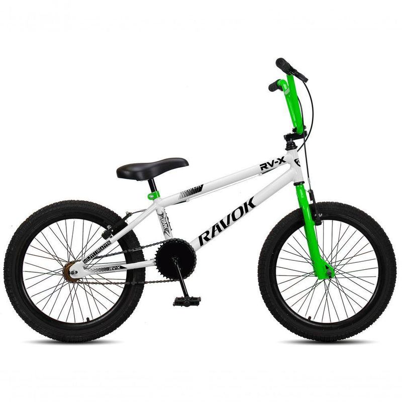 Bicicleta BMX Cross Aro 20 RV-X Aro Aero Freio V-brake Ravok Branco Verde