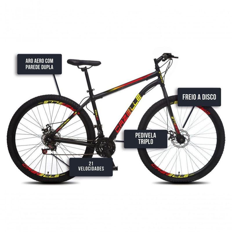 Bicicleta Cazelle Roma A.29 Tam 18 Aco Carbono F.disco 21v -quadro Preto C/ Adesivo Preto/adesivo Vermelho/amarelo