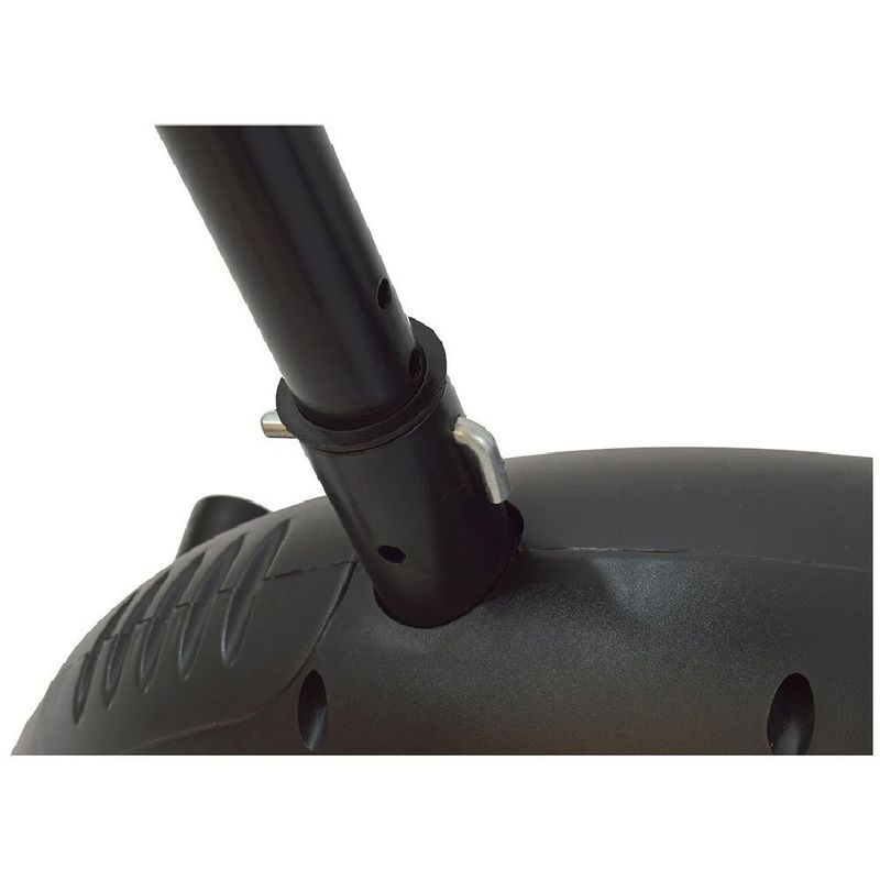 Corpo da bicicleta: Aço carbono Confeccionada em tubo de aço carbono, selim anatômico com 4 regulagens de altura, carenagem de plástico poliestileno, sistema de carga com disco de aço e pastilha de feltro