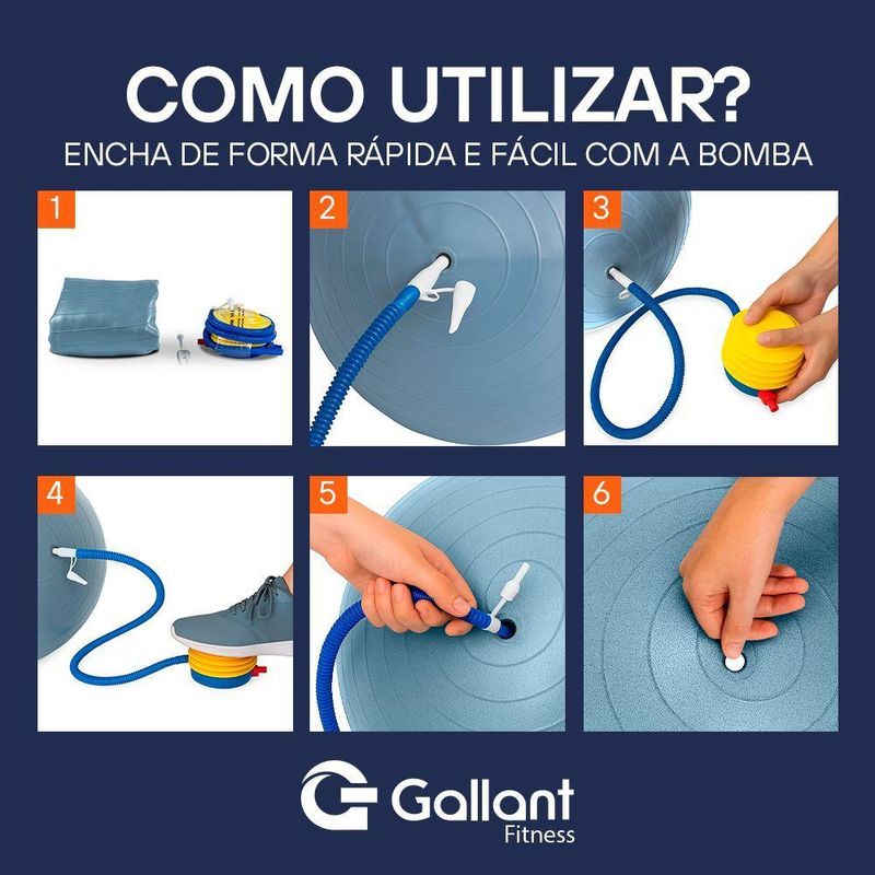 Bola de Pilates 65cm Yoga e Abdominal Com Bomba Gallant (GBP65AECBA-AZ)A Bola de Pilates 65cm Yoga e Abdominal com Bomba Gallant é uma excelente opção para quem busca melhorar a força, a flexibilidade e a estabilidade corporal de maneira segura e eficiente. Com a facilidade de ajuste de pressão, ela oferece a base perfeita para uma ampla gama de exercícios. Seja para Pilates, yoga, abdominais, alongamentos, tratamento de fisioterapia ou treinamento funcional, essa bola vai ajudar a potencializar seus resultados e tornar seu treino mais desafiador e eficaz.Além disso, a bola possui sistema anti estouro em caso de perfuração ou pressão excessiva, ela não estoura repentinamente, mas esvazia lentamente, reduzindo o risco de acidentes durante os treinos.Principais Benefícios