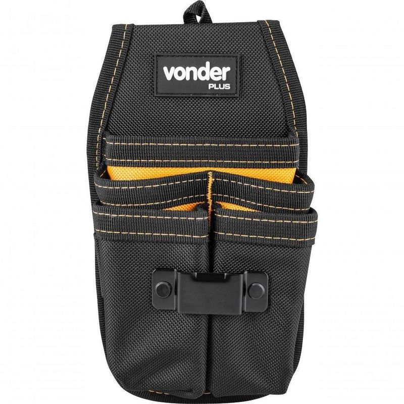 Marca: VonderCódigo: 3540130007Conteúdo da embalagem1 Porta ferramentas.Destaques e diferenciais:Confeccionado em lona reforçada, possui sistema fixa fácil para fixação no cinto. Conta com 7 bolsos/divisões na parte externa.Aplicações e dicas de uso:Indicado para acondicionamento de ferramentas e acessórios em geral. Não acompanha cinto.Material (tipo/composição): Lona reforçada Cor do porta-ferramentas: Preto e amarelo Divisões: 5 Bolsos + 2 Alças elásticas Capacidade máxima de carga (kgf): 3,0 kgf Massa aproximada (peso) (kg): 0,242 kgGarantia - E (CDC):Garantia legal: 90 dias NA