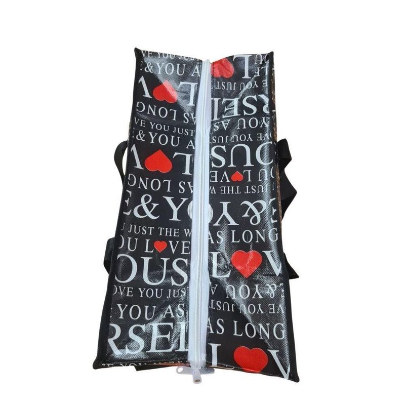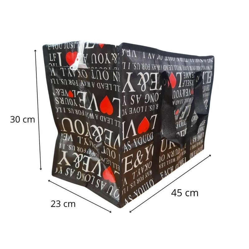 Bolsa Sacola de Viagem Dobrável em Lona Impermeável – Grande Capacidade, Estampas Diversas e Muita Resistência!A solução ideal para quem precisa de espaço, praticidade e resistência!Essa bolsa sacola multiuso é fabricada em lona plástica reforçada e impermeável, perfeita para viagens, mudanças, organização ou transporte de roupas, calçados, brinquedos, mantimentos e muito mais.Destaques do Produto:Material resistente e impermeávelFechamento com zíper reforçadoAlças firmes para transporte com segurançaDobrável – fácil de guardarIdeal para viagens, feiras, mudanças e armazenamentoEstampas modernas e coloridas (enviadas conforme estoque)Dimensções Aproximadas:Altura:30cmLargura:45cmProfundidade: 23cmIdeal para:Viagens curtas ou longasTransporte de roupas, cobertores e calçadosOrganização de armários e guarda-volumesMudanças e armazenamento em geralUso em feiras e compras em atacadoItem incluso:1 Bolsa Sacola em Lona Impermeável
