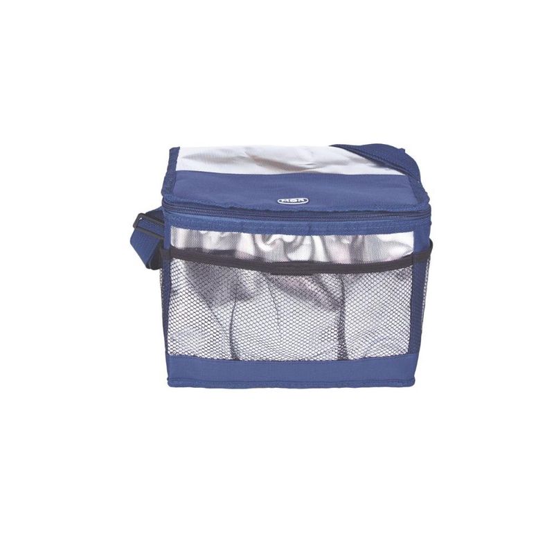 Bolsa Térmica Fitness Camping 10 Litros Mor Com capacidade para até 18 latas de 350ml sem gelo a Bolsa Térmica 10 litros Mor é super prática e discreta. Em tons de azul marinho e prata ela é compacta e multifuncional, podendo te acompanhar durante o lanche na escola, trabalho ou academia e até mesmo servir como nécessaire para transportar seus produtos de higiene e beleza com facilidade. Descrição do produto: Marca: Mor Cor: Azul marinho e prata Material: Poliéster Capacidade: 10 litos Medidas (AxLxC): 20cm x 20cm x 26cm Imagens meramente ilustrativas, todos os itens que ambientam o produto não estão inclusos.