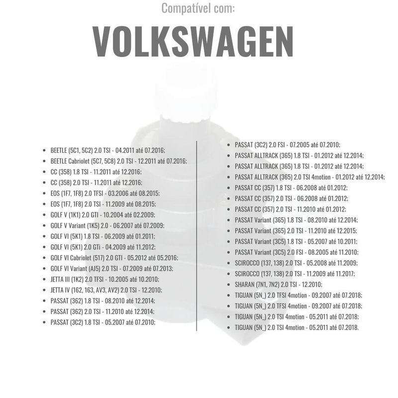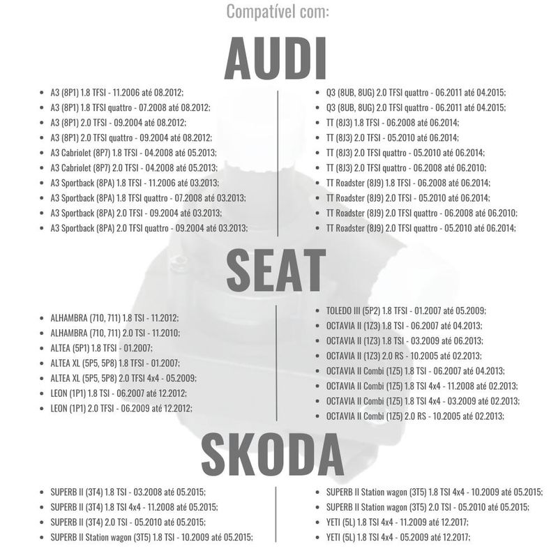 Aplicação: Audi, Seat, Volkswagen e Skoda, verificar nas fotos modelo, ano e especificações Medidas: