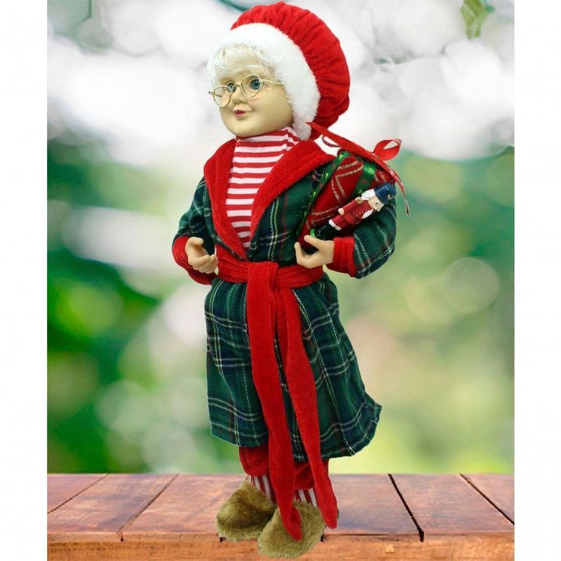 Boneca Mamãe Noel Decoração Pijama Roupão Com Presentes 47cm -