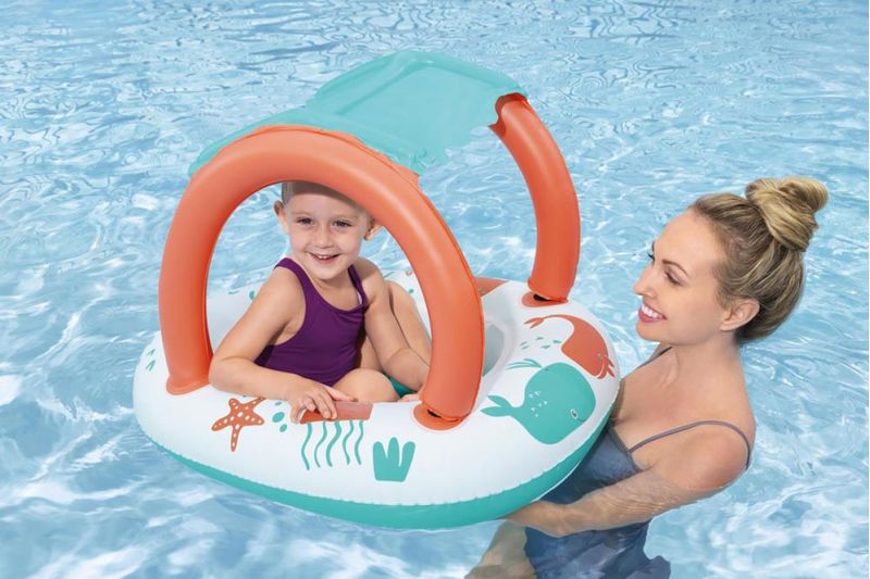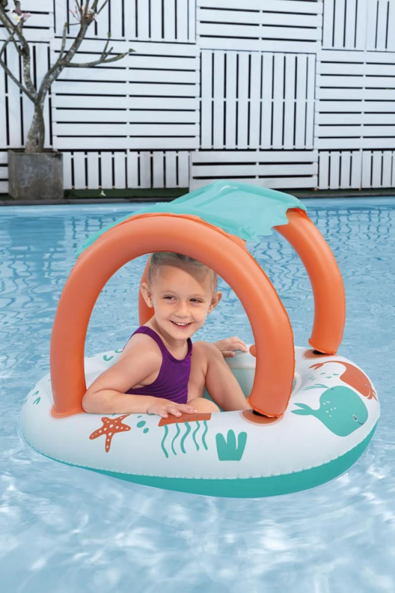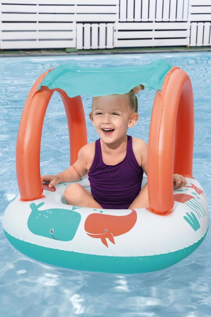 O Bote Inflável com Cobertura Toque Aveludado Baleia combina segurança e conforto para os pequenos na piscina. Possui uma charmosa cobertura que protege do sol, garante momentos de lazer mais agradáveis e protegidos. É produzido em vinil resistente com acabamento aveludado, conta com uma câmara de ar independente, 2 válvulas de segurança e adesivo para reparos. Fácil de transportar quando desinflado, ocupa pouco espaço e proporciona muita diversão. Indicado para crianças de 3 a 6 anos, é perfeito para um verão seguro e divertido. Atenção! Este não é um equipamento salva-vidas. Sempre supervisione as crianças na água.