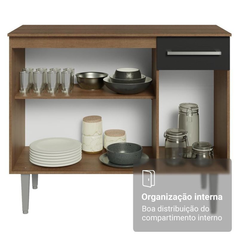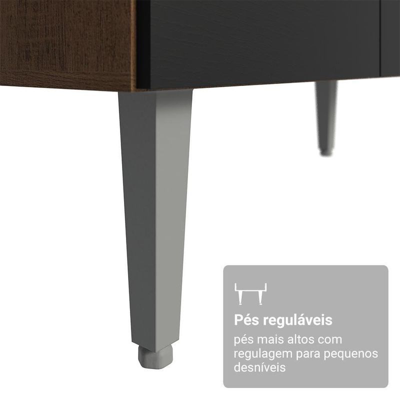 Possui acabamento em alta resistência, além de contar com corrediças metálica e pés reguláveis em PVC.
