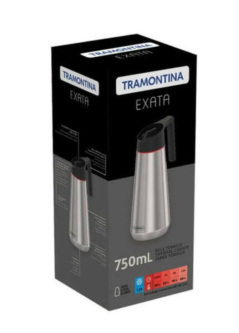 Com o Bule Térmico Tramontina Exata em Aço Inox 750 ml você terá uma peça charmosa e elegante para seu café, chá ou água. Ele pode ser utilizado para manter líquidos quentes ou frios na temperatura adequada por muito mais tempo. Seu design moderno e clean pode ser combinado com qualquer estilo de cozinha, deixando-a muito mais bonita. Ele é desenvolvido em aço inox com acabamento texturizado fingertip free, o que garante alta resistência, durabilidade e impede marcas de utilização. Com sistema corta-pingos embutido e cabo confortável, ele ainda é mais leve e seguro de manusear. Os bules em inox podem ser utilizados para uso doméstico ou comercial. A escolha ideal!