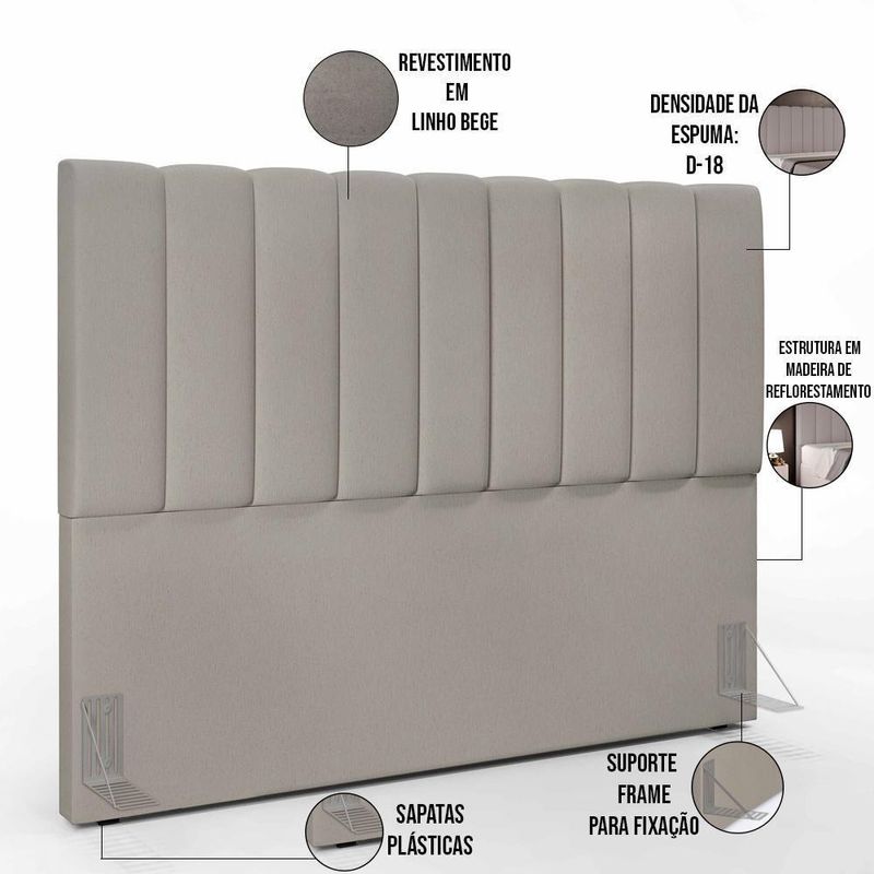 Cabeceira Cama Box Casal King 195 Cm Dália W01 Linho Bege - Lyam Decor