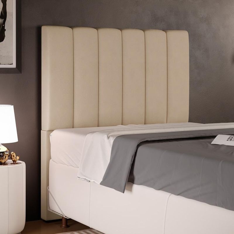 Cabeceira Cama Box Solteiro 100 Cm Dália W01 Suede Bege - Lyam Decor