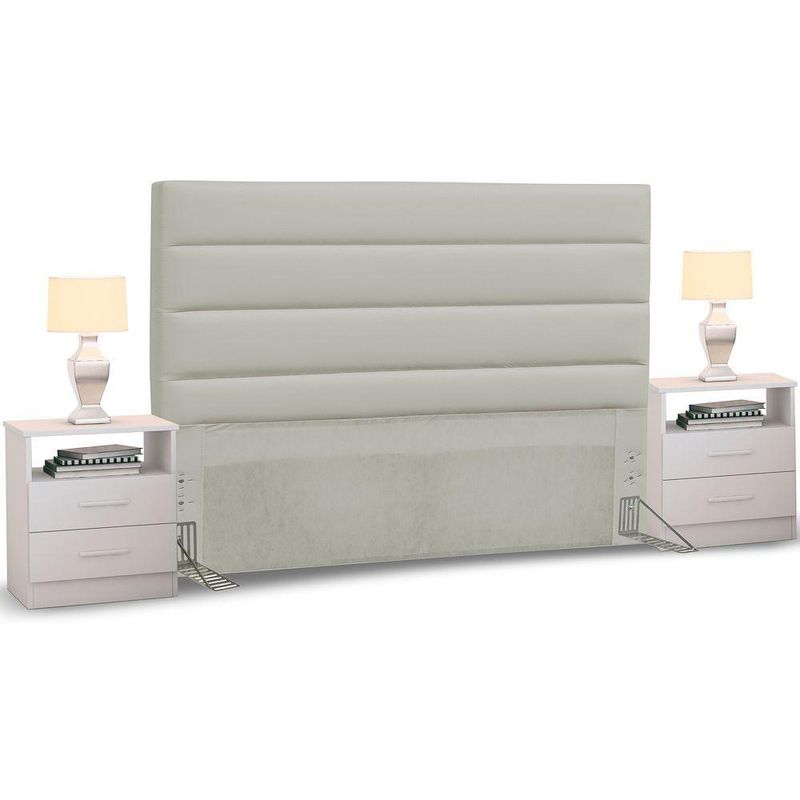 Cabeceira Cama Box Casal 140cm Greta Corano E 2 Mesas De Cabeceira Ad1 Branco - Mpozenato -corano Bege