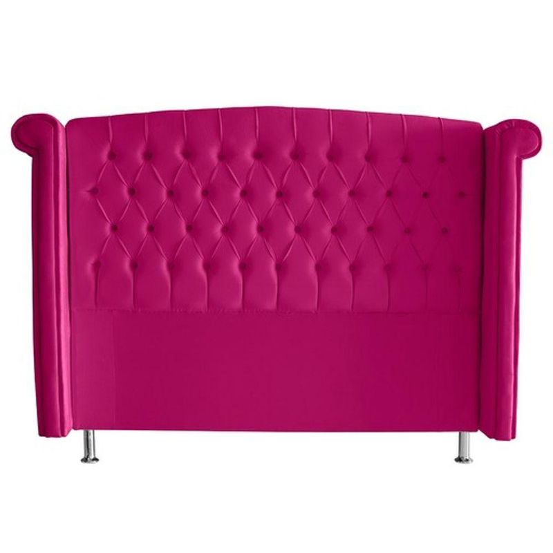 Essa cabeceira casal estofada é um Luxo só, isso porque o seu design curvo somado aos botões revestidos cria um ambiente clássico e charmoso.