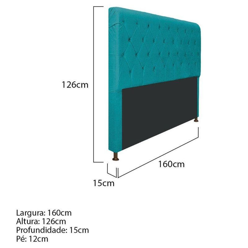 Cabeceira Estofada Cristal 160 Cm Queen Size Com Capitonê Suede Azul Turquesa - Adj Decor