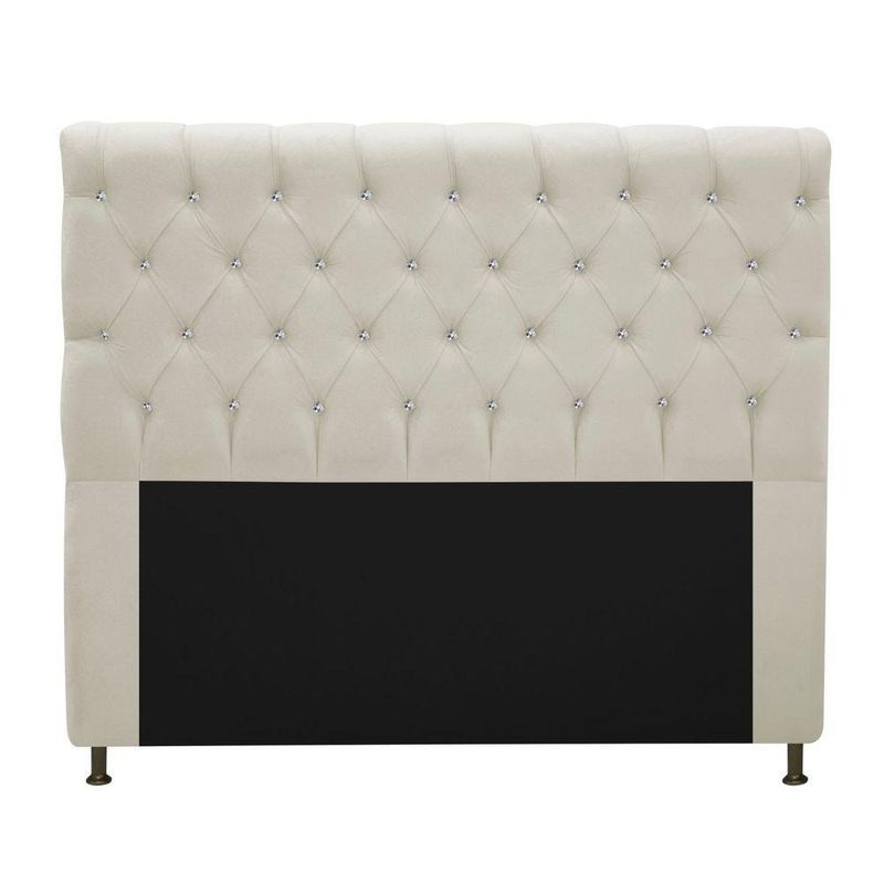 Cabeceira Estofada Cristal 195 Cm King Size Com Strass Suede Bege - Adj Decor