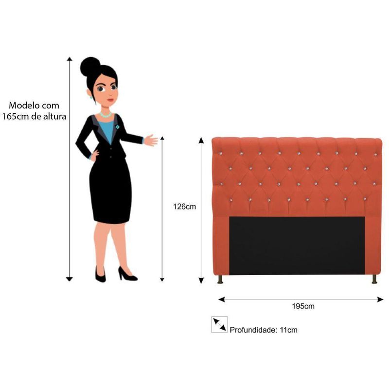 Cabeceira Estofada Cristal 195 Cm King Size Com Strass Suede Terracota - Adj Decor
